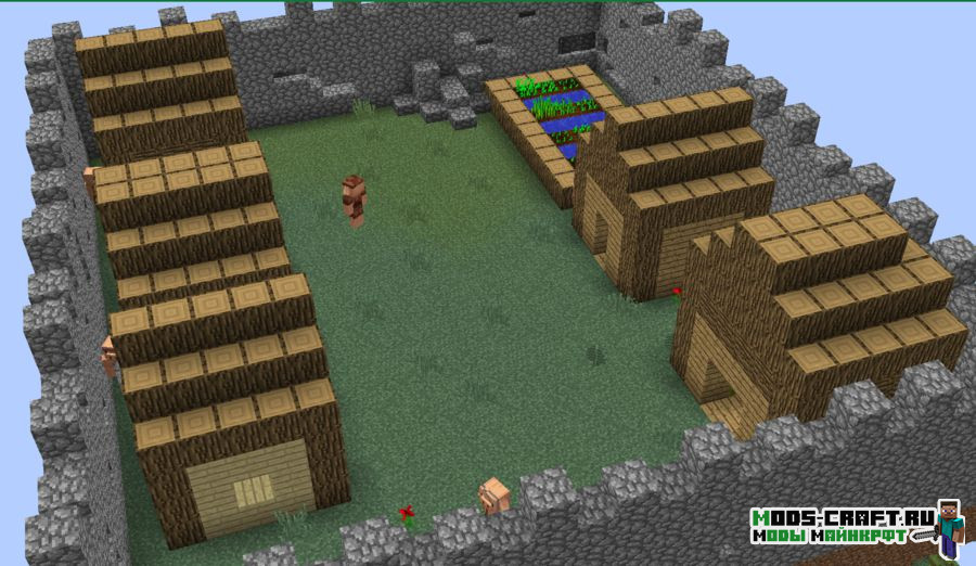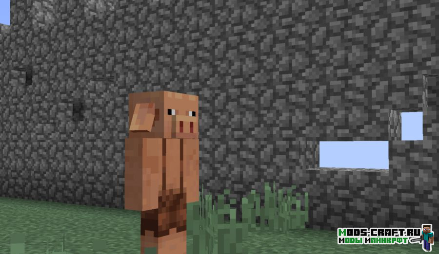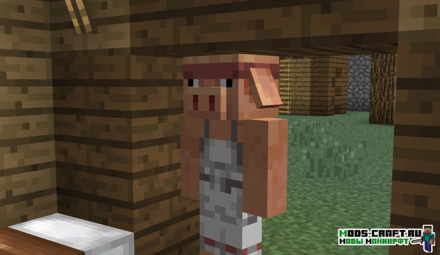 Модификация переносит пиглинов в обычный мир Майнкрафта. Теперь во время путешествия по миру вы можете встретить целые поселения пиглинов, где каждый его житель будет обладать своей профессией и назначением. Для торговли с этими свиноподобными существами используйте рубины, которые можно найти в шахтах или в деревне.