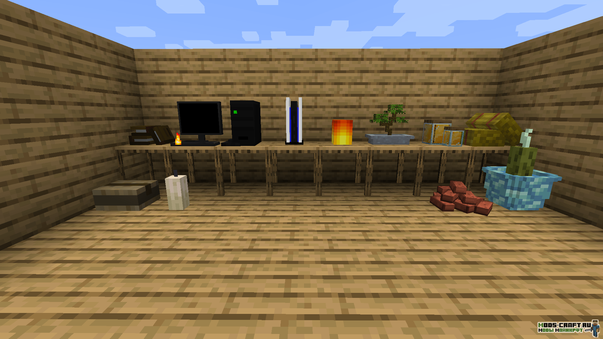 Мод добавляет набор декоративных блоков и красивой мебели для украшения ваших построек и созданию реалистичного жилища.