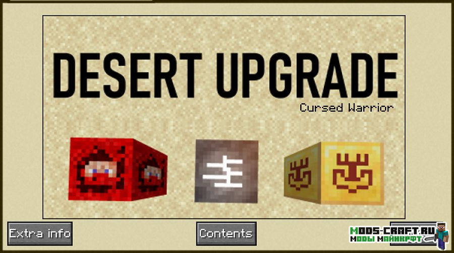 Desert Upgrade улучшает пустынные биомы игры Майнкрафт, добавляя на них различный интересный контент. Вы сможете встретить бандитские группировки, 35 новых генерируемых структур, создать новые инструменты и сеты брони, а также задействовать выравнивающую кирку.