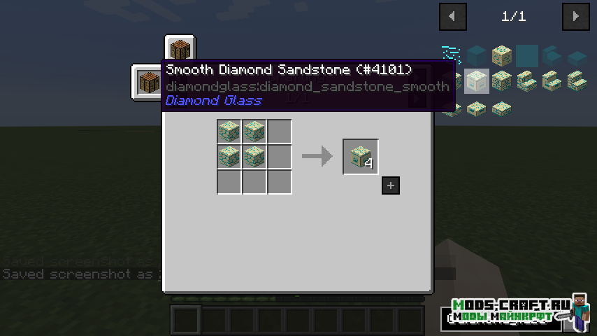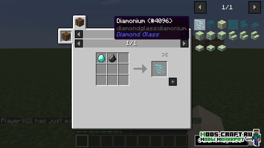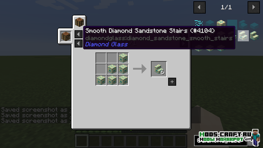 Мод Diamond Glass добавляет в игру Майнкрафт особо прочные стёкла из алмазов. Алмазные стеклянные блоки, стекла, плиты и лестницы обладают взрывостойкостью обсидиана, их чертовски трудно сломать после установки, и они имеют уникальную текстуру.
