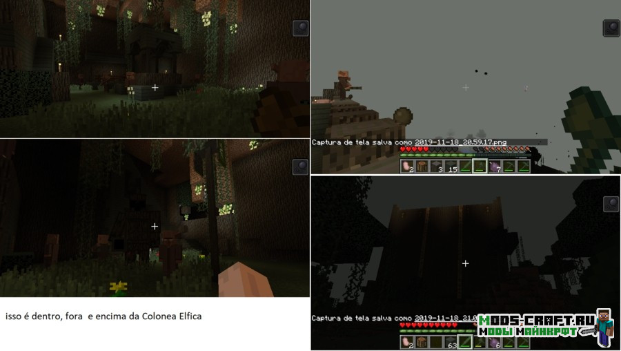 Мод Dimension Elfs Dark добавляет новое измерение тёмных эльфов, которое будет доступно для исследования. Здесь вы сможете найти более 30 новых мобов, создавать уникальные предметы, сражаться с боссами, исследовать новые подземелья и найти поселения тёмных эльфов.