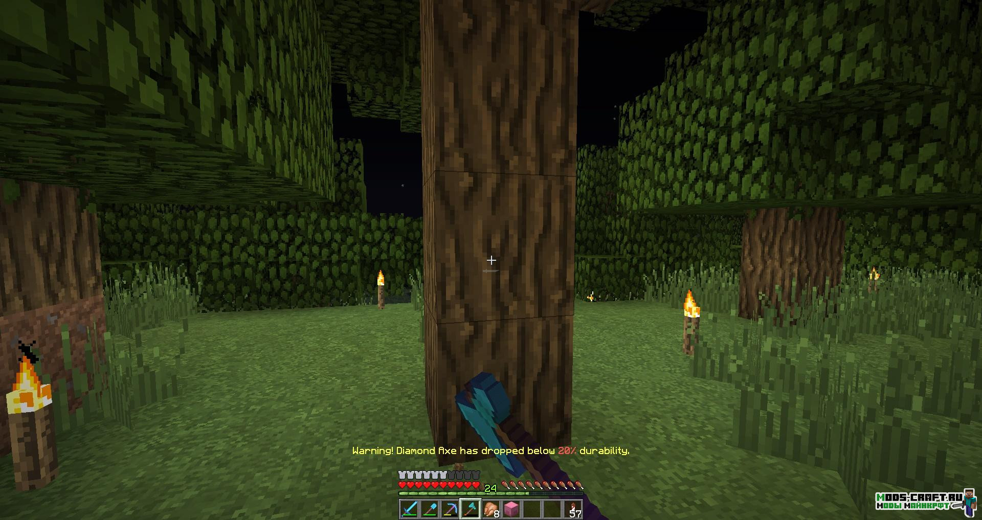 Полезный мод, который будет предупреждать о скорой поломке инструмента в виде сообщения и показа процента прочности красным цветом на экране.