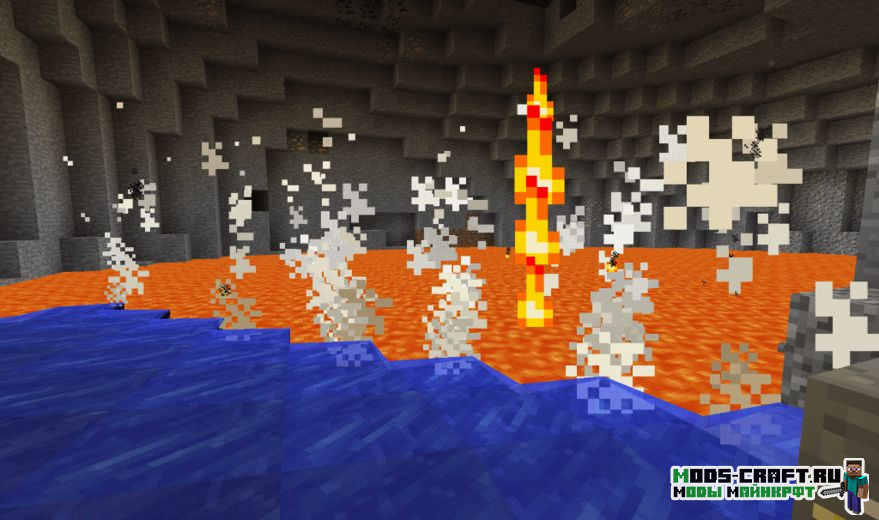 Также вы увидите различные графические твики и улучшения, вроде волн на воде от дождя, паровые струи испарения воды от столкновения с лавой, брызги воды от водопада, утренний туман и прочее.