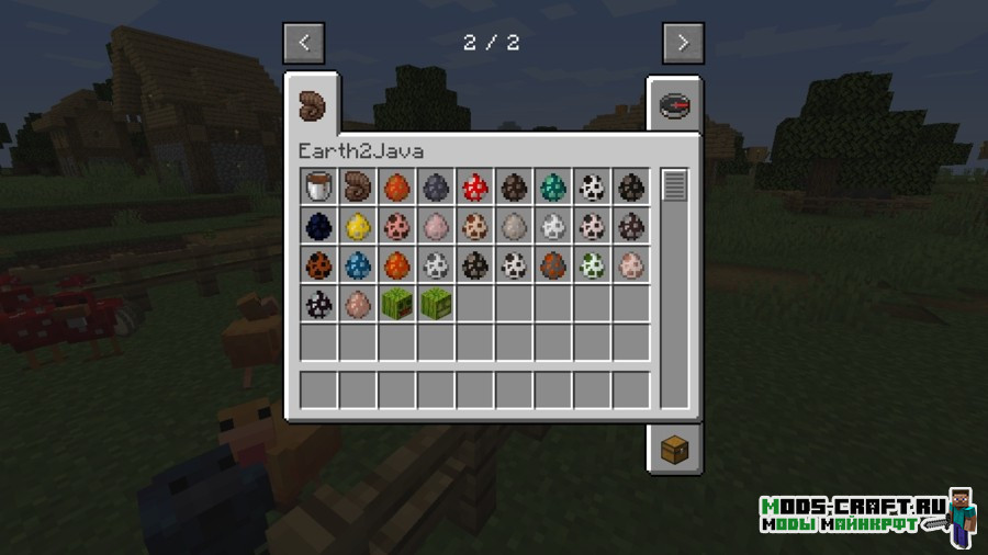 Earth2Java добавляет предметы и мобов из игры Minecraft Earth в Minecraft Java Edition. Некоторые мобы будут обладать не только новыми текстурами, но и уникальными функциями из MCE. Всех добавленных существ можно встретить в обычном мире или порождать при помощи яиц спавна в творческом режиме.