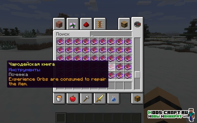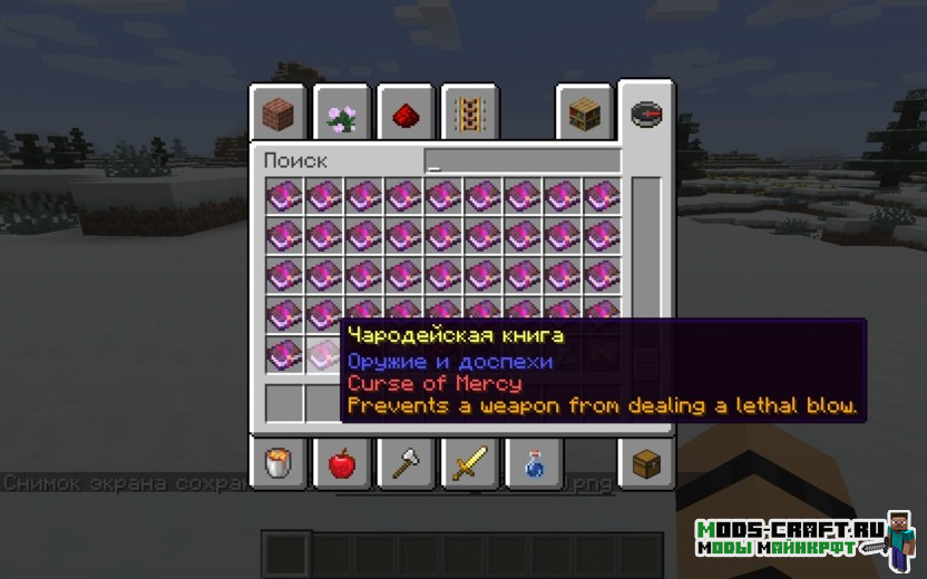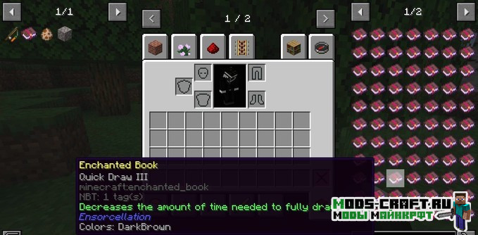 Ensorcellation добавляет большое количество новых зачарований в игру Майнкрафт, а также улучшает ванильные — это добавляет разнообразия при выживании.