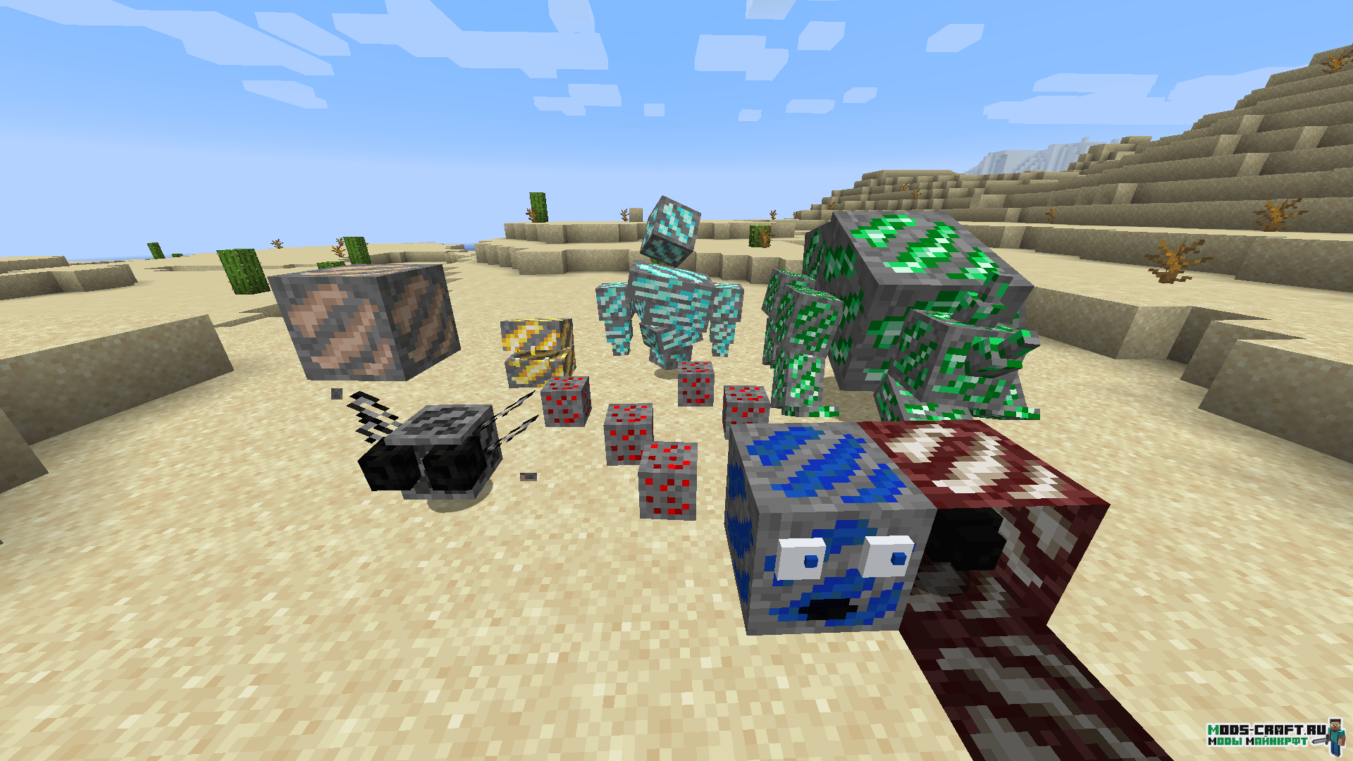 Evil Ores добавляет 8 новых мобов, по одному для каждого тип руды в игре. Эти мобы имеют случайный шанс заспавниться при добычи руды и будут атаковать игрока.