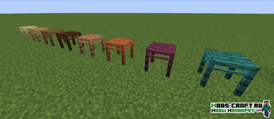 Exline’s Furniture добавляет в игру элементы декора и мебели для украшения вашего дома. Вы сможете создать столы, стулья, шторы, лампы, окна, тостер и кухонный кран. Большинство деревянной мебели создается из всех пород дерева, так вы можете подобрать идеальное сочетание цветов для внутренней отделки дома.