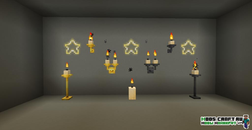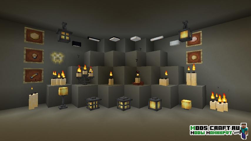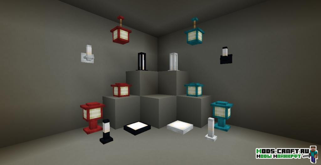 Если вам не хватает стандартных источников света в Майнкрафт, то хочу представить модификацию Extended Lights, которая добавит новые предметы освещения: лампы, светильники, фонари, современные фонари и свечи. Они прекрасно впишутся как в выживание, так и послужат для красивого украшения дома новым светом.
