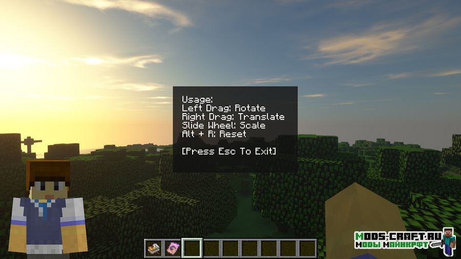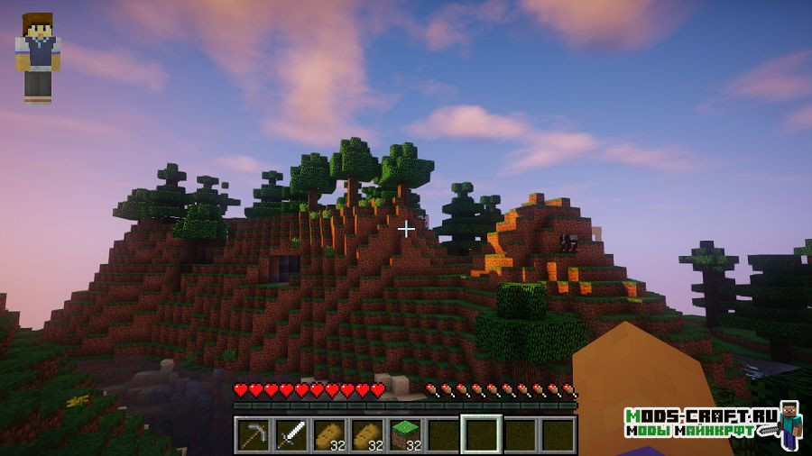Мод Extra Player Render добавляет миниатюрную 3D-модельку вашего персонажа в левый нижний угол экрана. При помощи сочетания клавиш Alt+P (в старых версиях мода это делается при помощи команды /epr) вы сможете открыть интерфейс настроек мода и самостоятельно выбрать положение иконки на экране, а также увеличить или уменьшить её размер. Причем модель будет полностью соответствовать внешнему виду скину игрока с инструментами/оружием в руках, надетой бронёй и подстраиваться под внешние изменение от других модов на шляпы, костюмы и броню.