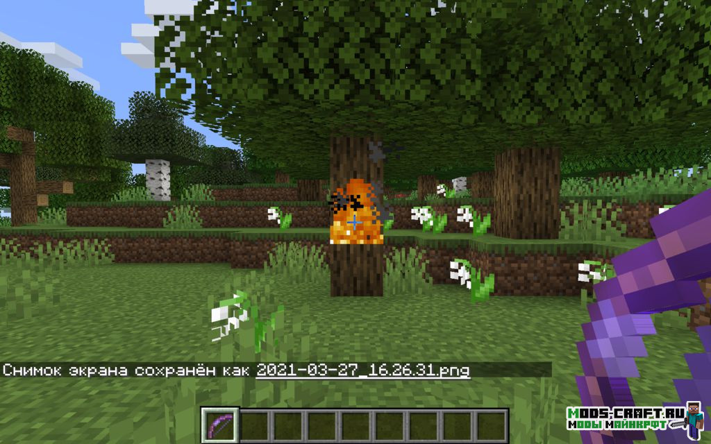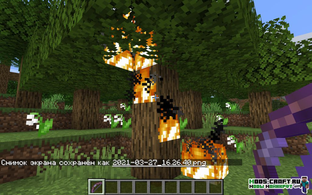 Fire Arrows Start Fire добавляет новую механику для зажжённых стел — теперь они будут поджигать блоки при попадании в них.