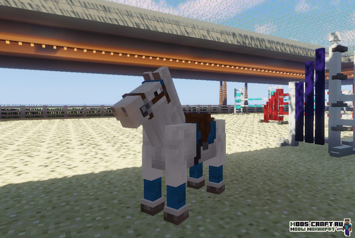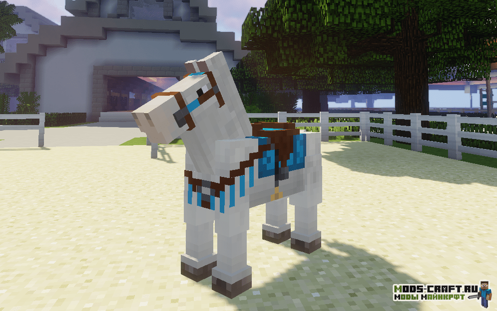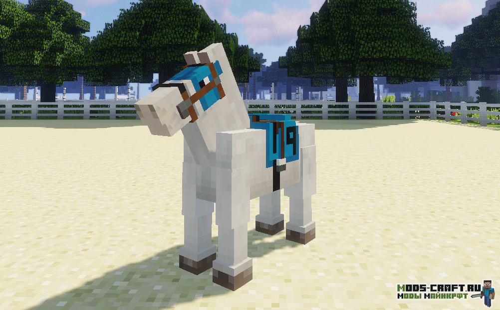 Мод добавляет различные упряжки для лошадей, которые теперь вы можете создавать с различными цветами и текстурами. Всего 6 категорий и 16 цветов вариантов упряжок.