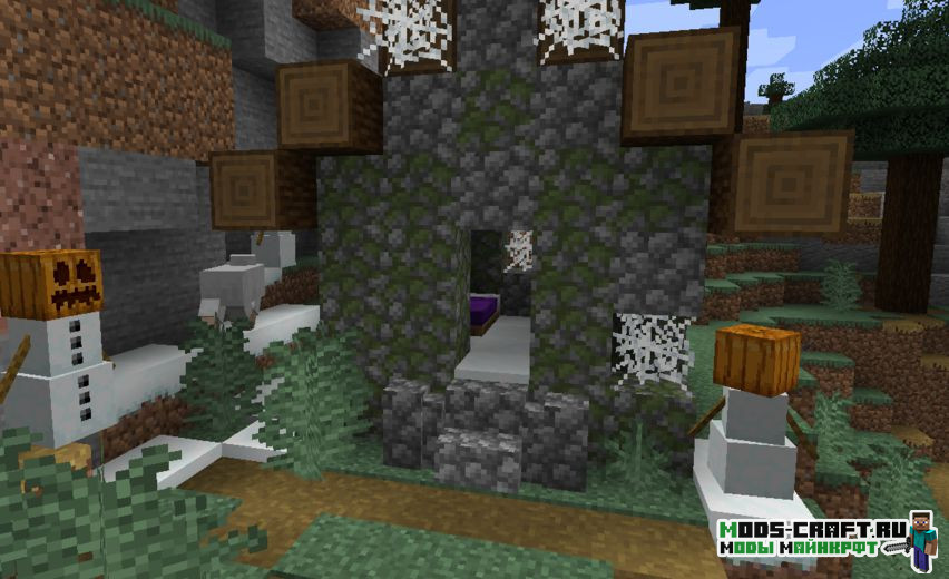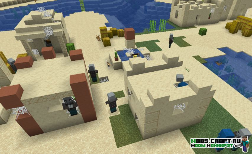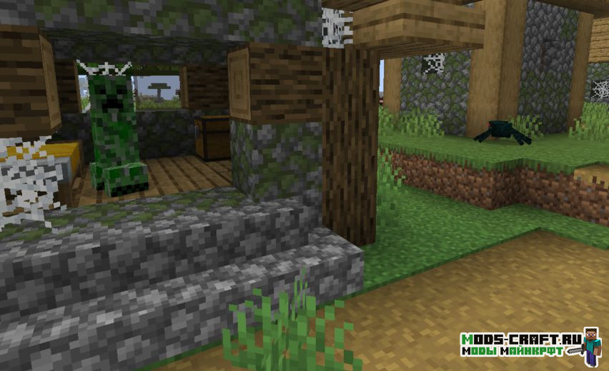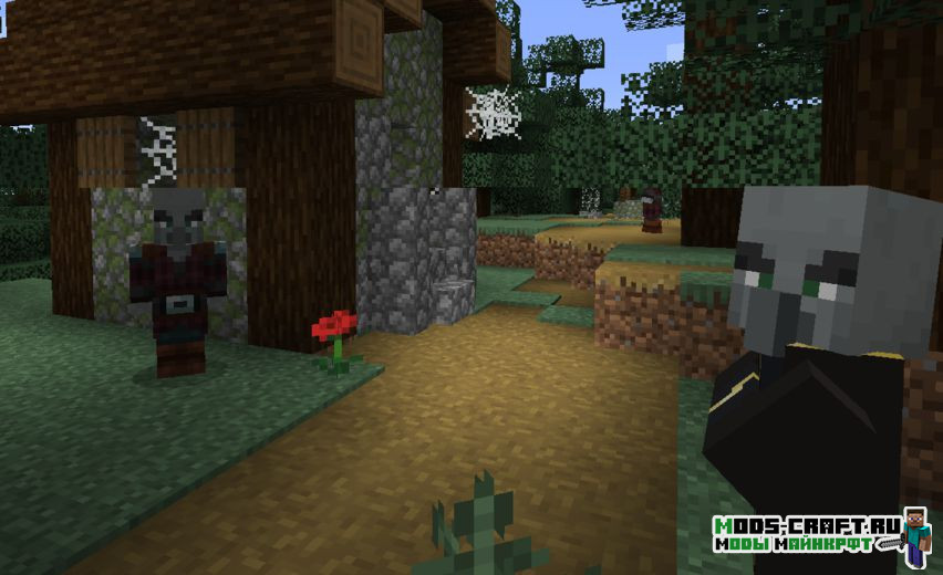 Теперь все деревни в Майнкрафт станут заброшенными и будут заселены враждебными мобами. Вы сможете настроить ряд параметров мода: количество генерируемых мобов, шанс генераций таких деревень, спавн сундуков с лутом и настроить шанс появления ванильных деревень.