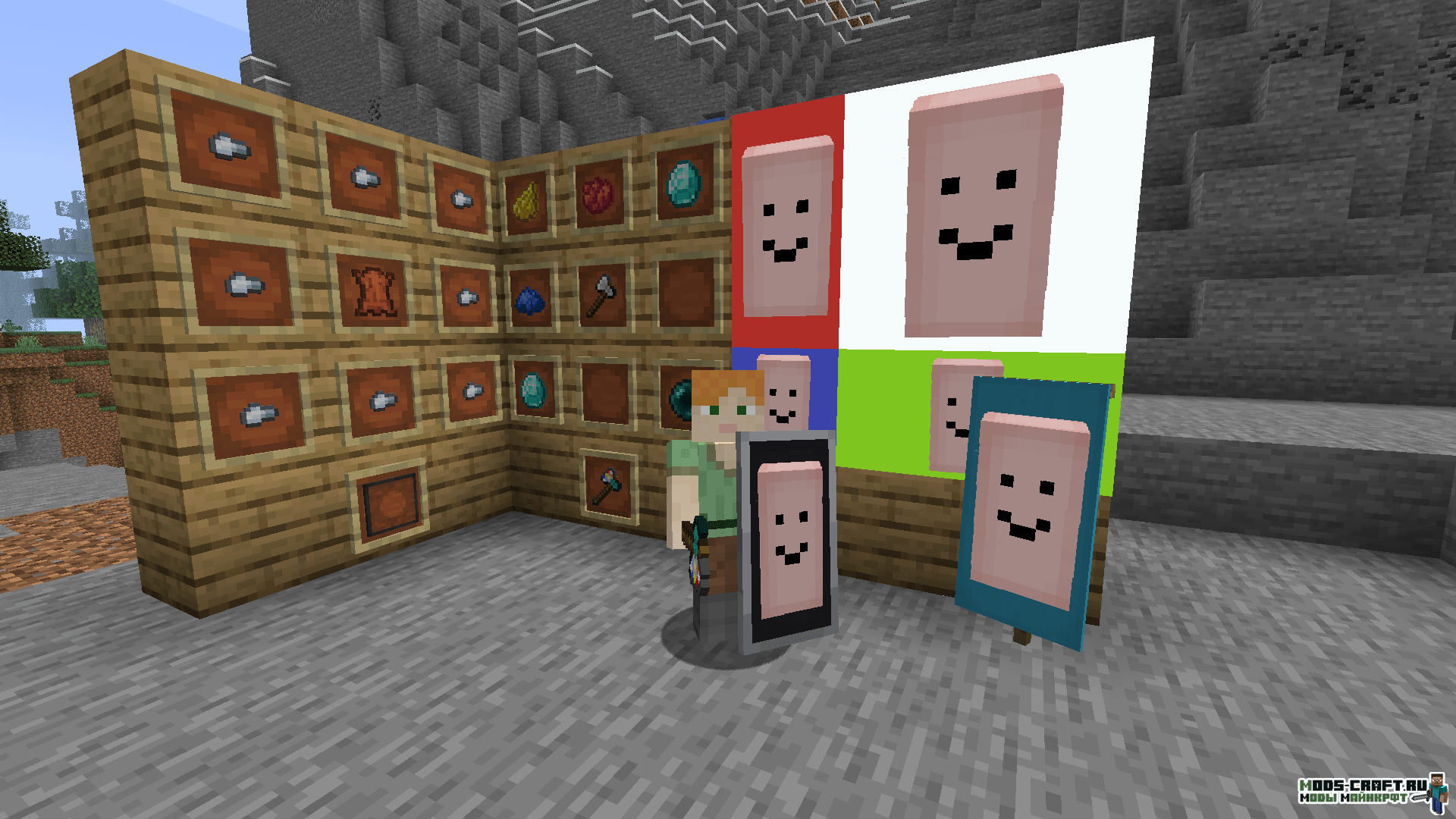 Images — это очень интересный мод, позволяющий размещать вам в мире игры изображения из интернета через ссылку. Размещение изображений осуществляется на флагах, баннерах и рамках картин при помощи нового топора и нажатия комбинации Shift + ПКМ, далее на ПКМ можно выбирать ваши изображения.