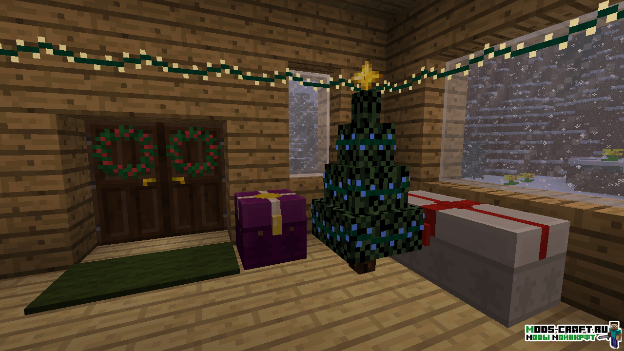 Мод добавляет множество новогодних украшений в игру Майнкрафт: рождественские елки и огни; венки; подарки; чулки; а также праздничные угощения, такие как сахарное печенье, леденцы и многое другое. Это поможет вам в создании уникальной праздничной атмосферы нового года и рождества в игре.
