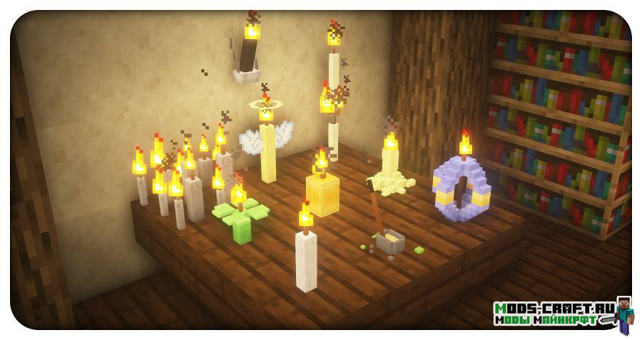 Kray’s Magic Candles — это модификация, которая добавляет магические свечи в игру Майнкрафт. Помимо источника света, вы можете использовать их для создания очень мощных ритуалов, рун, палочек и более мощных свечей. Всего будет добавлено 12 магических свечей, 17 различных цветных свечей, 6 мощных палочек, 5 магических ритуалов, магические руны, алтари, статуи, культуры и многое другое…