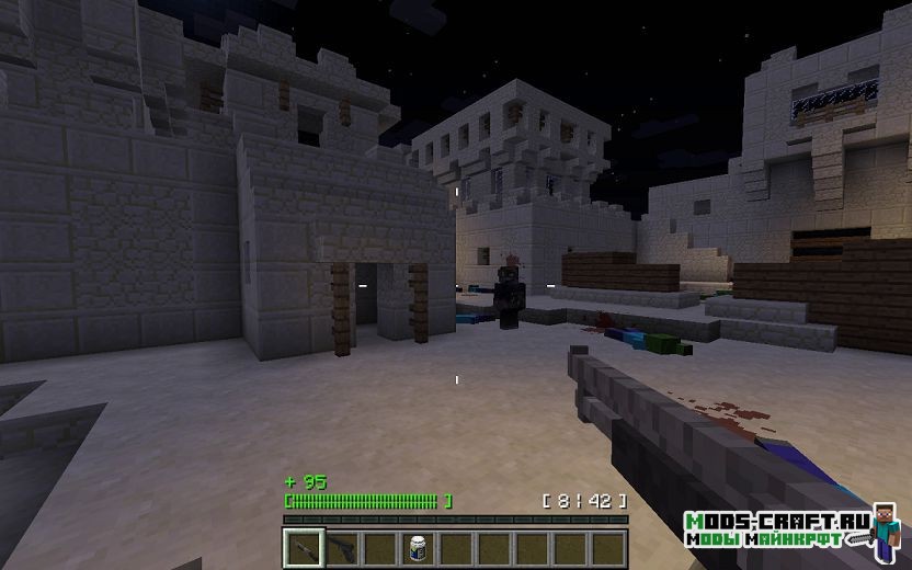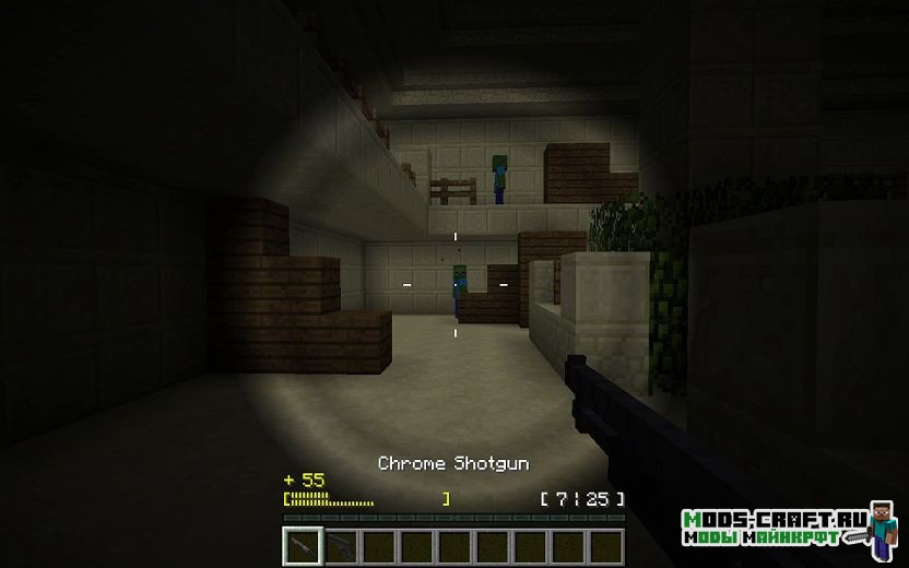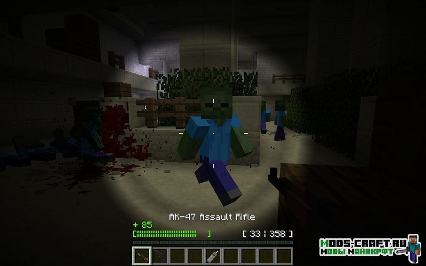 Интересный тематический мод, который позволяет создавать атмосферу всем известной игры про зомби left 4 dead. Появится оружие, новые виды зомби, мини-боссы, физика, стрельба, новые предметы и много крови. Кроме этого появится обновлённый HUD, где здоровье и сытость будет отображаться в процентной шкале. Зови друзей, вооружайся и воюй с известными врагами в Майнкрафт!