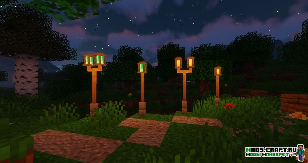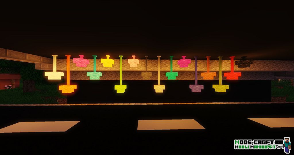 Мод Macaw’s Lights and Lamps добавляет в игру новые источники света, такие как: уличные фонари, фонарные столбы, торшеры, высокие факела, потолочные светильники, лампы, лавовые лампы и садовые светильники. Причём вы можете выключить свет на новых блоках, удерживая нажатой клавишу Shift и щелчком ПКМ по блоку. Все элементы декора можно изготовить по не сложным рецептам крафта. В скором времени автор планирует добавить намного больше контента, следите за обновлениями на нашем сайте.
