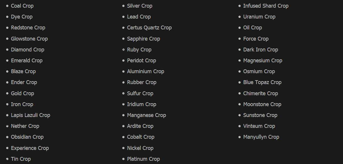 Мод Magical Crops позволяет вам создавать свою плантацию растений, из которых можно вырастить драгоценные металлы и ценные ресурсы. То-есть теперь нет такой сильной необходимости спускаться в шахты за добычей ресурсов и лута.