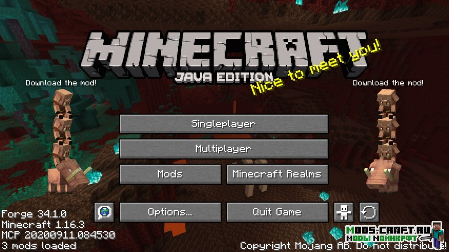 Menu Companions — это косметический мод, добавляющий 2 мобов в главное меню игры — слева мод, добавленный в последнем обновлении, а справа скин игрока. Они будут следить и крутить головой за курсором игрока, а при нажатие на меню издавать звук. Вы сможете самостоятельно установить любых модов в меню через файл конфигурации.
