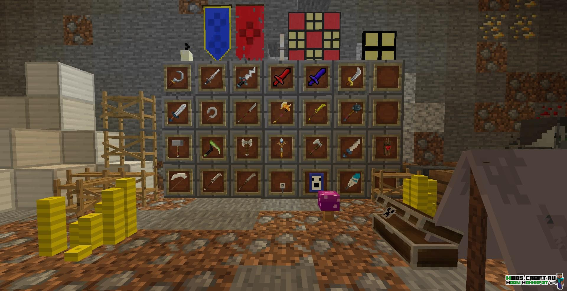 Мод добавляет в игру Майнкрафт оружие, инструменты, броню, мобов, данжи и прочее из новой игры от Mojang Minecraft dungeons.