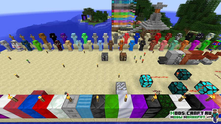 Мод Mo’ Shiz добавит кучу разнообразного контента в игру: блоки, предметы, инструменты, оружие, сеты брони, руды, семена, растения и прочее.