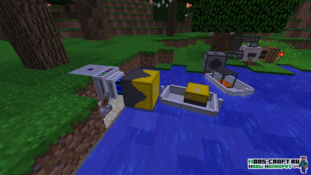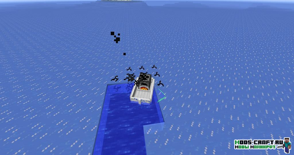 - Модульная лодка: это главная фишка данного мода, в лодку можно установить один из модулей (см. ниже) и она будет принимать его функциональность.