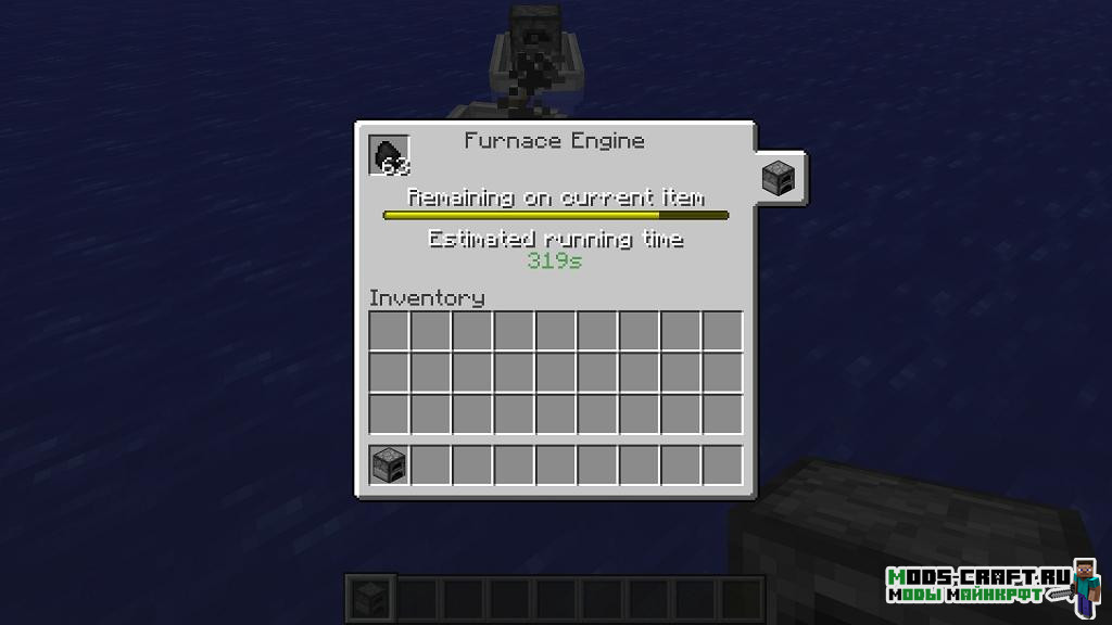 - Печной двигатель: двигатель, работающий на топливе (любое топливо, принятое ванильной печью + факелы и магматические блоки).