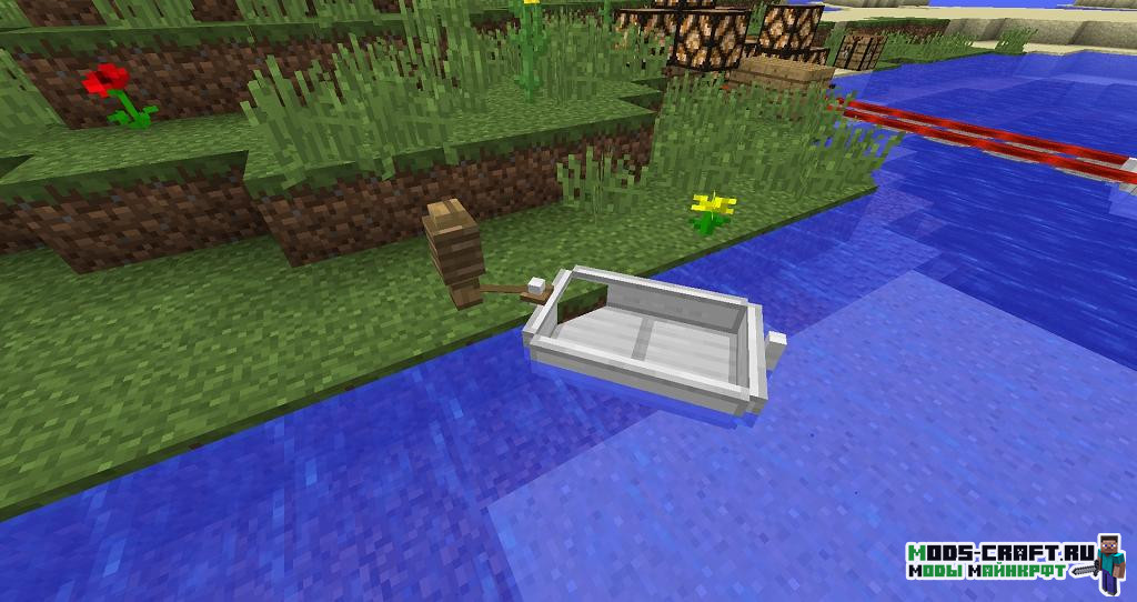 - Лодочные весла: позволяет управлять лодкой как в ванильной версии.