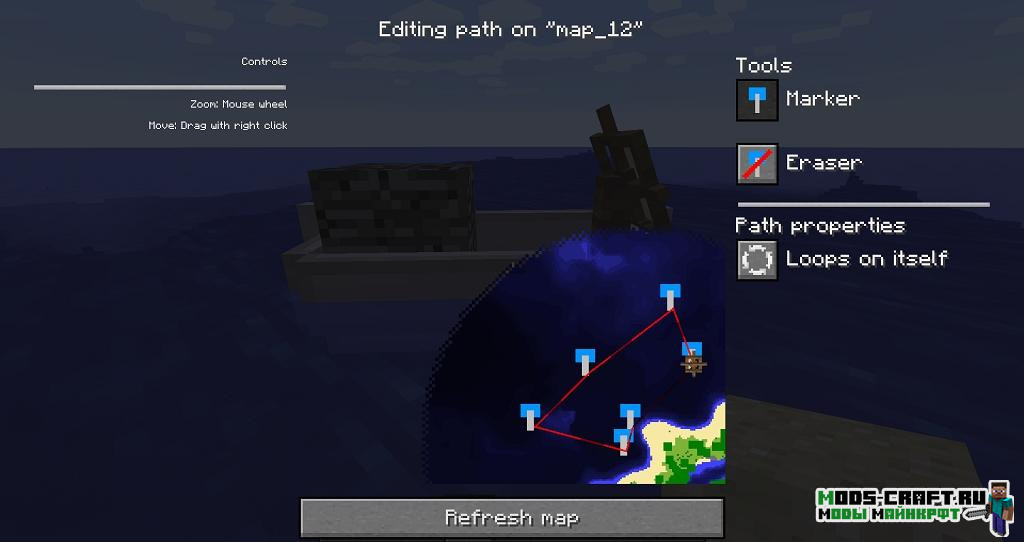 - Рулевой модуль — это, пожалуй, самый важный модуль мод. Установите точки на карте, чтобы лодка двигалась автоматически в нужном направлении.