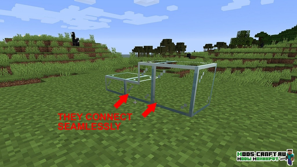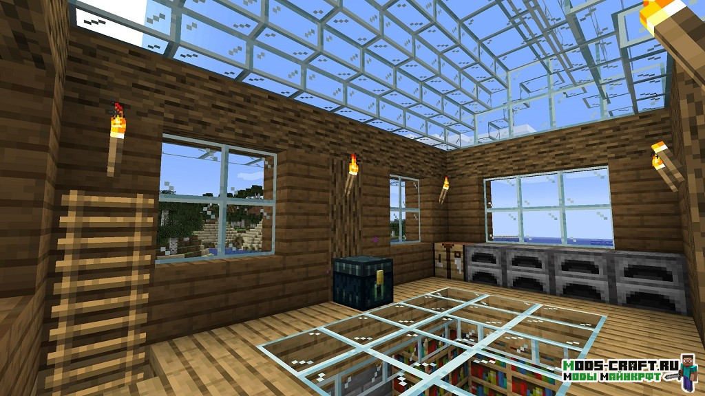 Небольшой мод, который добавит стеклянные полублоки и лестницы с красивым соединением без линии ограничения блока. С помощью этого можно строить красивые постройки из стеклянных блоков.