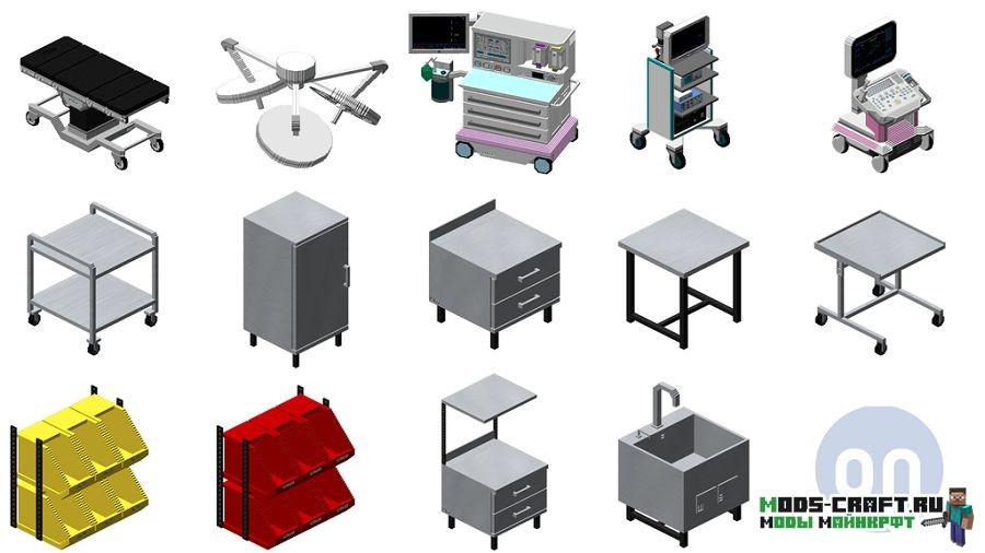 Теперь в игре у вас появится самое современное медицинское оборудование для лечения больных и раненных. Станьте врачём и занимайтесь спасением людей в minecraft!