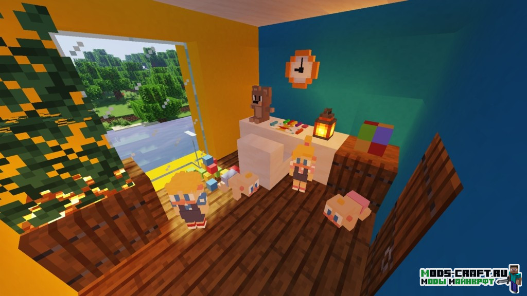 При помощи мода MineFamily вы сможете усыновить детей и растить их, пройдя три стадии взросления. Детей можно брать с собой в путешествие или оставить дома. Для создания детской комнаты добавлено куча декоративных детских блоков, игрушек и колыбельных.