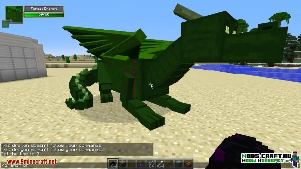Мод добавит возможность вырастить или приручить своего собственного дракона в Майнкрафт.Собственно получить дракона таким способом — нужно победить дракона края. Яйцо которое выпадет из него взять себе и хранить, пока их него не вылупится маленький дракон. Его необходимо кормить. Но также их можно просто приручить как питомца в мире.