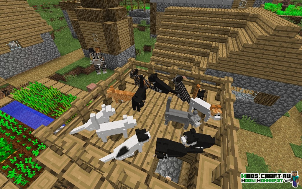 Мод Simply Cats добавляет новые виды кошек и котов в Майнкрафт! Теперь они будут разных цветов шести, глаз и смогут размножаться. Также появится специальный житель в деревни, который сможет продать вам специальный ящик для спавна собак и кошек. Найти его можно абсолютно в любой деревне.