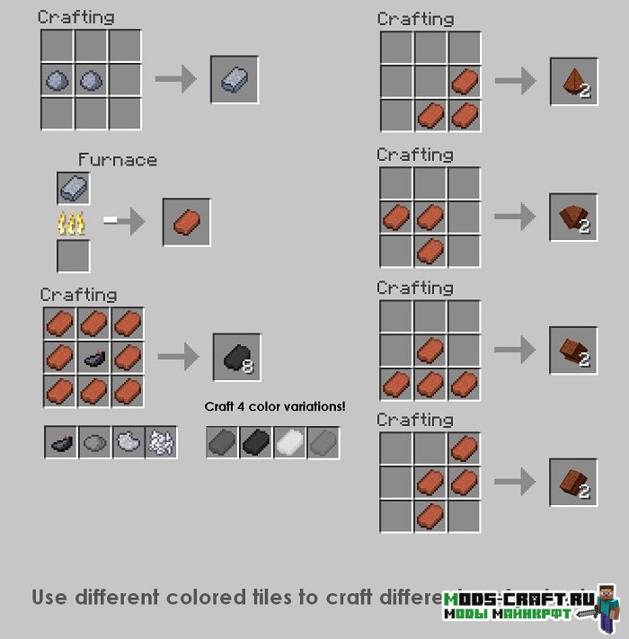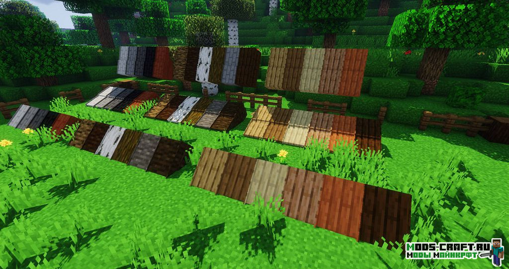 Мод Macaw’s Roofs добавляет более пятиста декоративных блоков, при помощи которых можно создавать красивые и реалистичные крыши для домов, делать различные навесы и водосточные трубы.