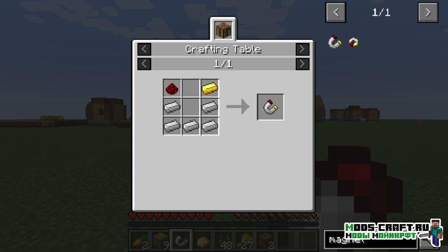 В игре появится специальный магнит, который позволяет притягивать определённые выбранные ресурсы в радиусе его действия, тем самым облегчается добыча лута. Можно назвать Simple Magnet немного читерным дополнением.