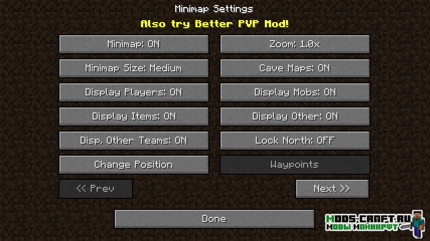Мод Xaero’s Minimap добавит шикарную мини-карту в игру Minecraft с удобным интерфейсом и гибкими настройками. Помимо отображения ландшафта, мини-карта показывает предметы, мобов и игроков в виде точек разных цветов или голов.