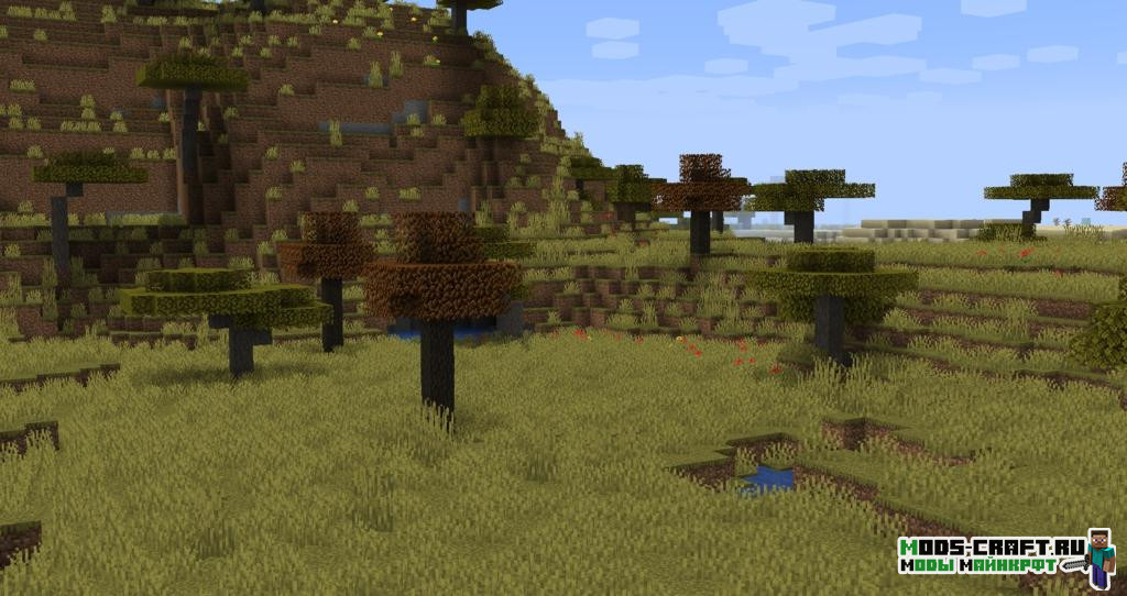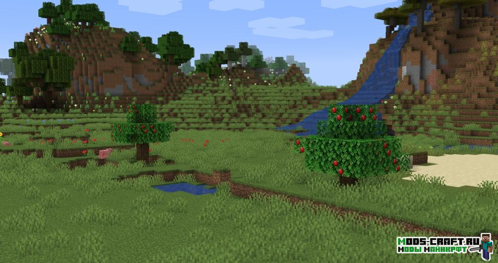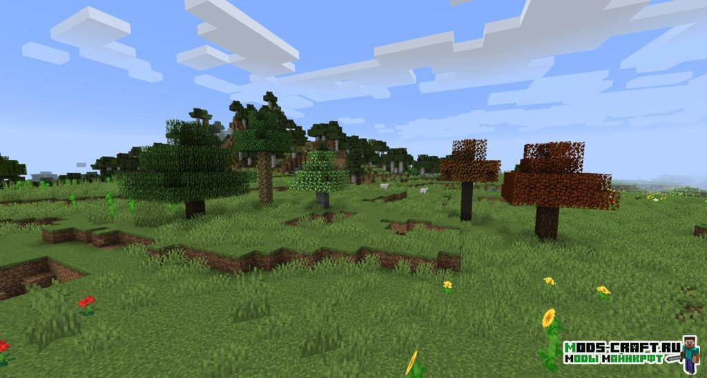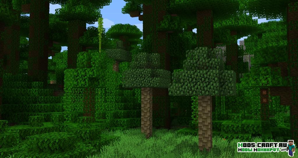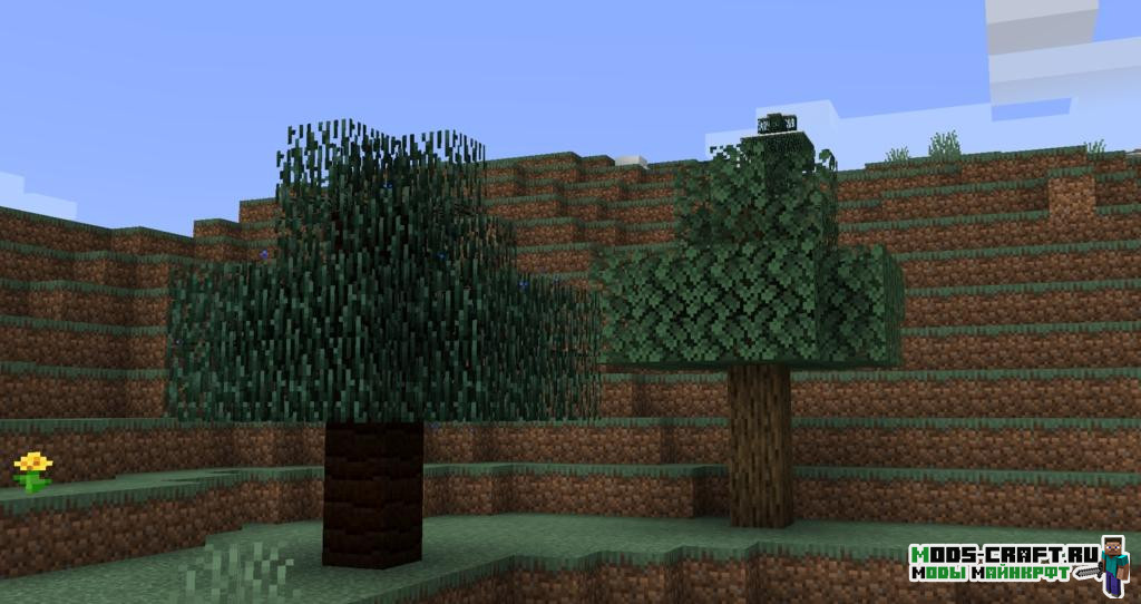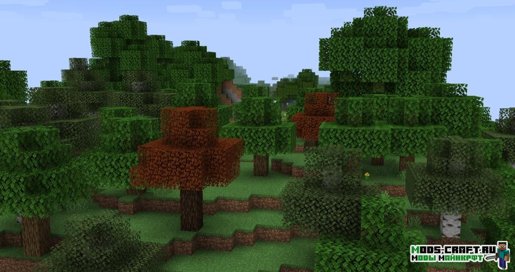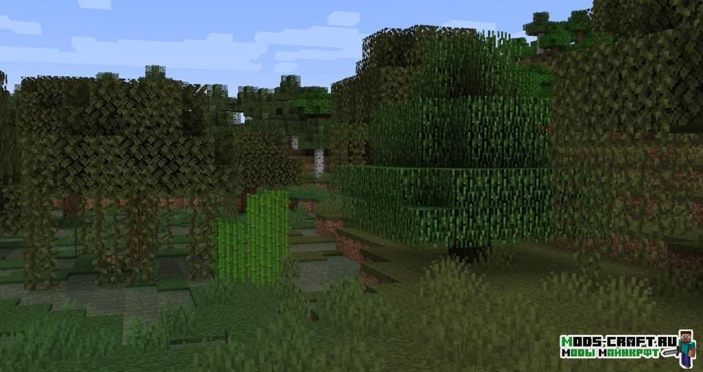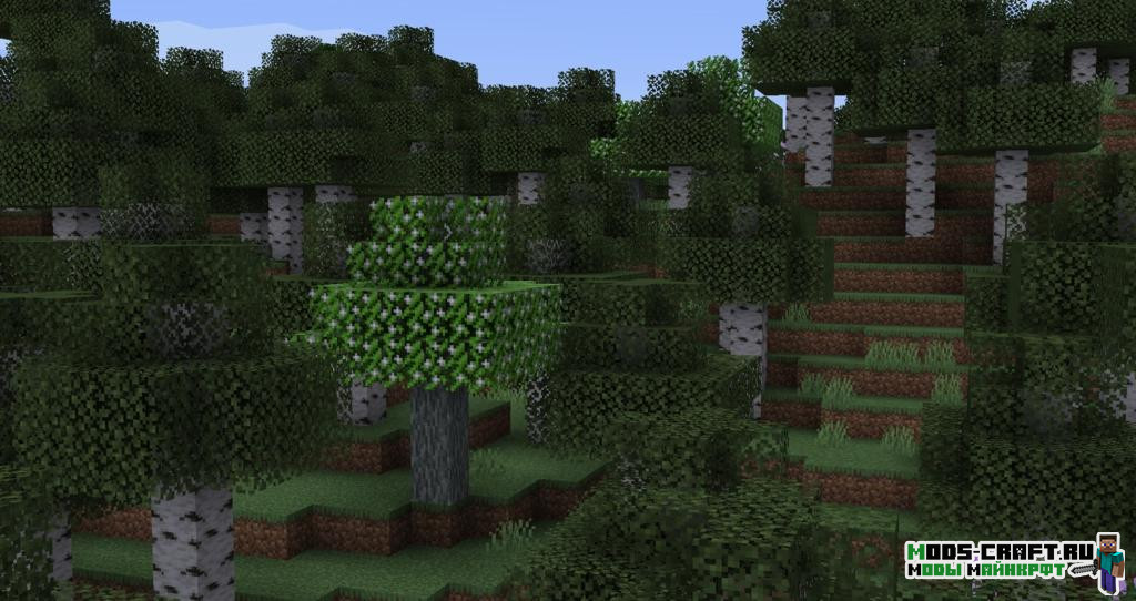 Мод добавляет новые типы деревьев: клены, тигровые деревья, Деревья Серебряного колокольчика, деревья пурпурного сердца, ивы, волшебные деревья и яблони. Их них можно изготовить доски и другие декоративные материалы.