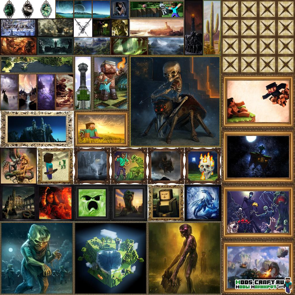 Мод Paintings ++ добавляет в Майнкрафт более 300 картин различной тематики и размеров. Теперь вы сможете украсить свой дом новыми произведения искусства, что сделает постройку более красивой и привлекательной.