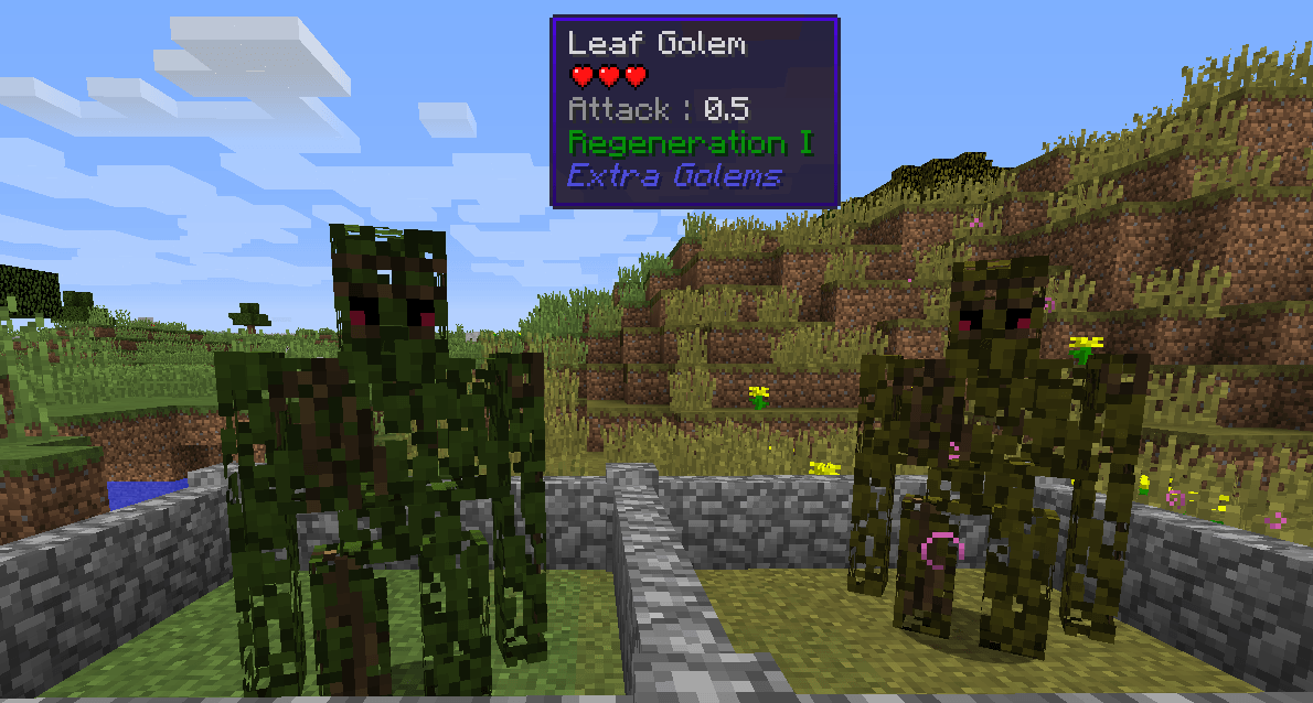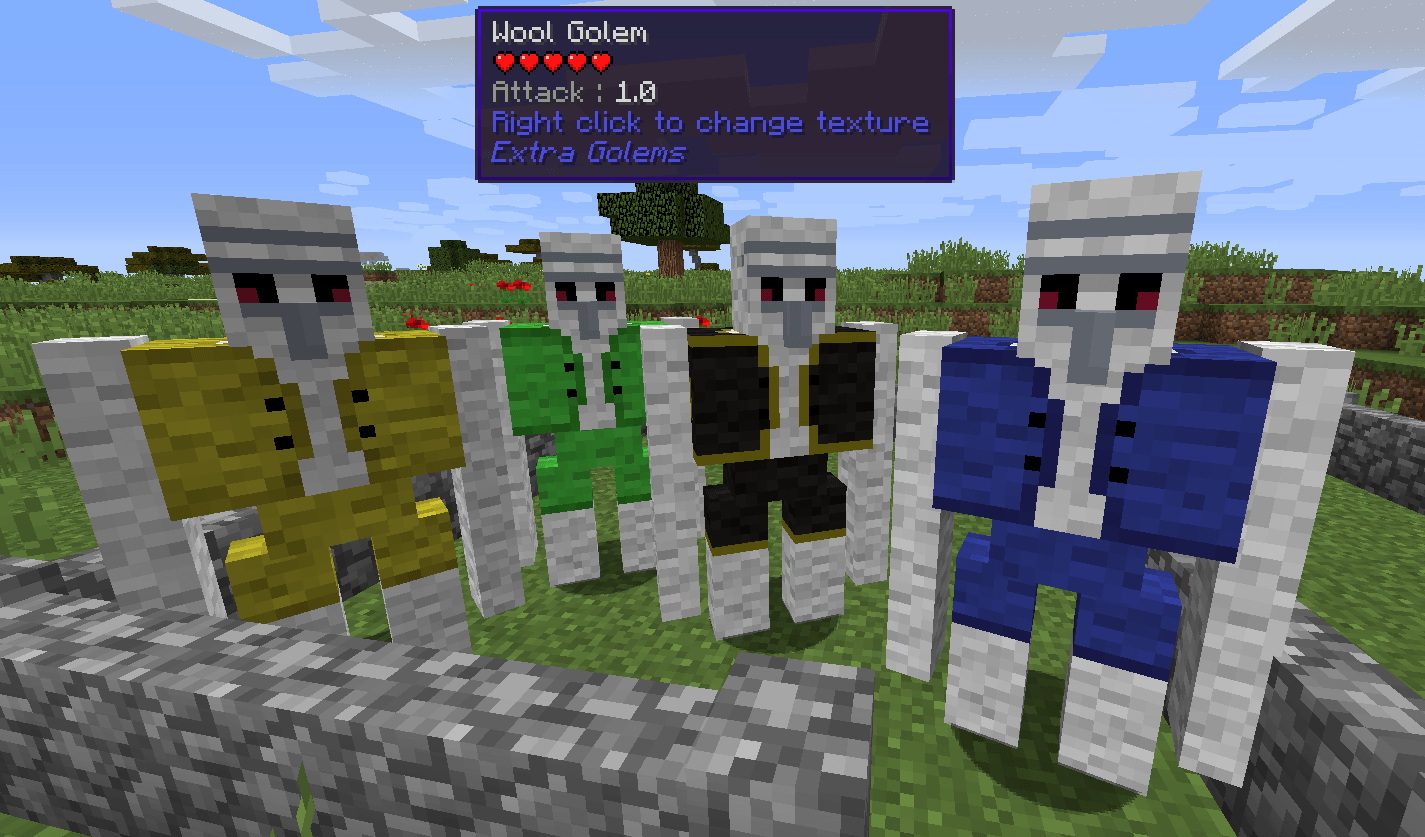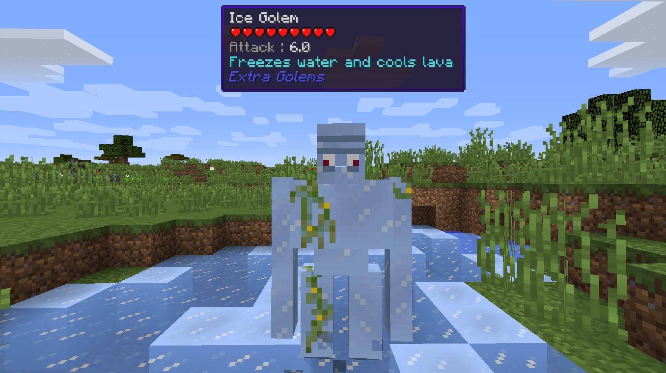 Мод Extra Golems добавит 40 новых видов големов в Майнкрафт, создаваемых из разных блоков игры. Например, вы можете сделать голема из стекла или земли и даже обсидиана. Каждый такой голем будет по своему уникален: обладать своей характеристикой атаки, здоровья и скорости — это зависит от типа блока из которого он создан. Создай свою армию големов-защитников или просто добавь разнообразия в игру.