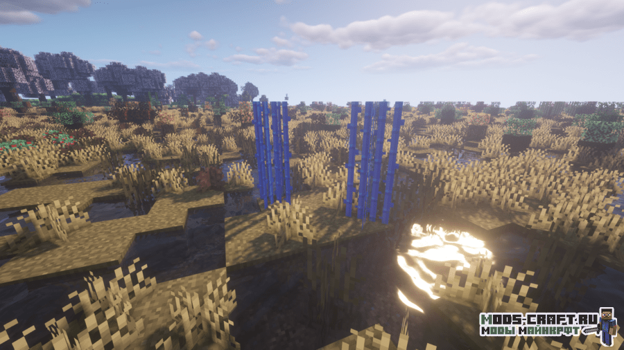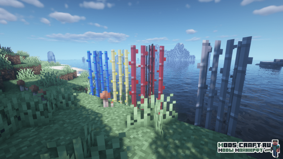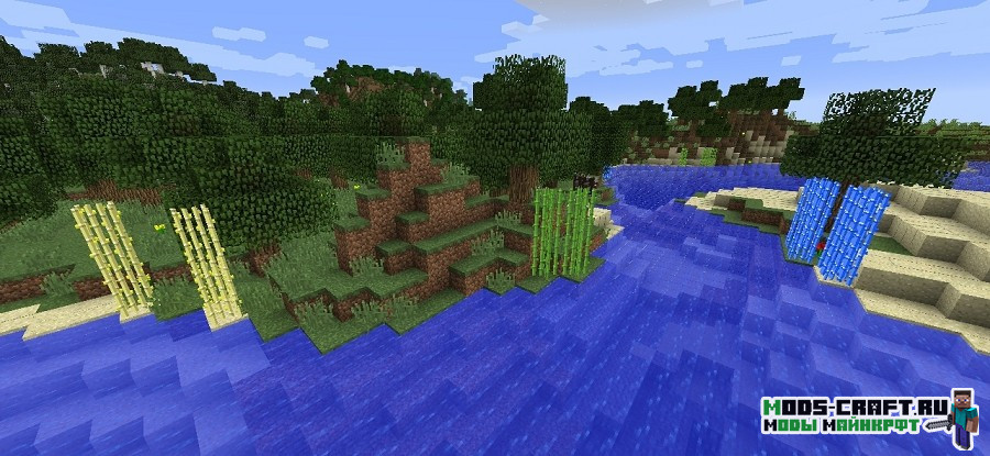 Данный мод добавит 4 вида тростника, который можно найти в мире Майнкрафт: из редстоуна, из светящейся пыли, из лазурита и из пороха. Такие тростники обладают высотой 4 блока, а чтобы получить их ресурс необходима переплавка в печи.
