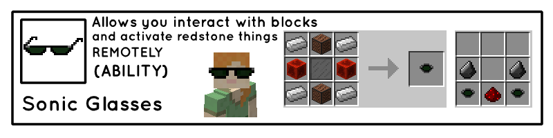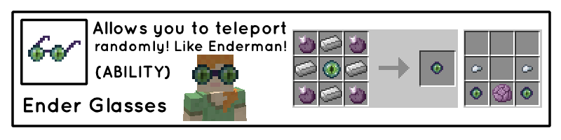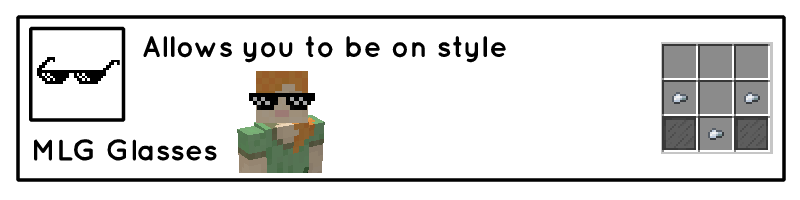 Мод добавит в игру майнкрафт очки, которые можно одеть на персонажа в место слота маски. Выглядят они довольно эпично: есть солнцезащитные, прозрачные и специальные в виде тыквы и мобов.