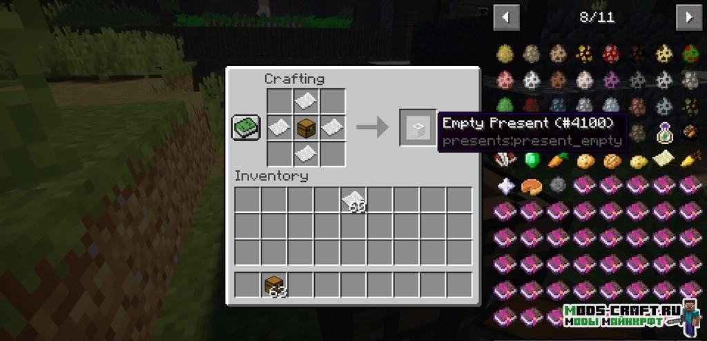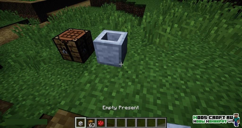 В игре теперь вы сможете создать самые настоящие подарки, которые могу быть созданы из сундука и листов бумаги различных цветов. В них можно поместить что угодно, а получить от туда предметы нужно добыв любым инструментом. Причём если у инструмента будет шанс удачи, может выпасть х2 лута.
