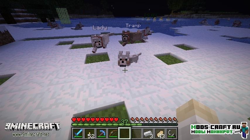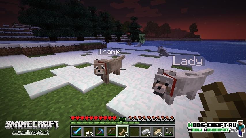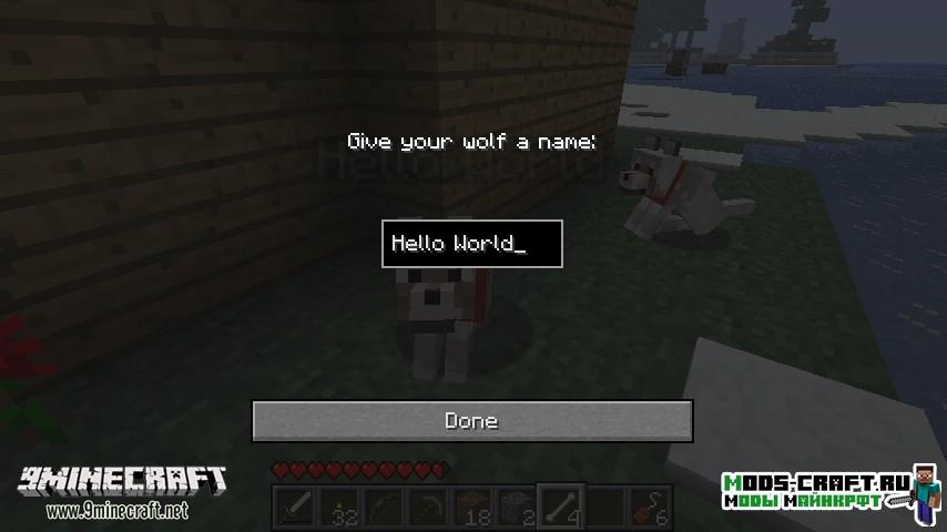 Мод расширит процесс приручения волка: позволит дать ему имя и заставлять выполнять команды.