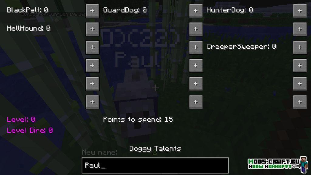 Мод позволяет вам по-настоящему прокачивать своего питомца (собаку) способностями, навыками и специальными новыми предметами. Собачку теперь можно кормить из миски, гладить, отслеживать её передвижение с помощью специального ошейника с радио-сигналом.