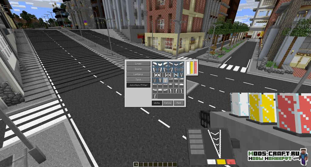 Наверняка каждому хотелось создать собственный город в Майнкрафт с ровными дорогами, где есть разметка, знаки, перекрёстки и светофоры? Если да, то данный мод для вас, помимо выше перечисленного, вы сможете создавать сложнейшие системы дорожного покрытия в игре, менять высоты, ширину и всё что необходимо для этого, скачиваем!