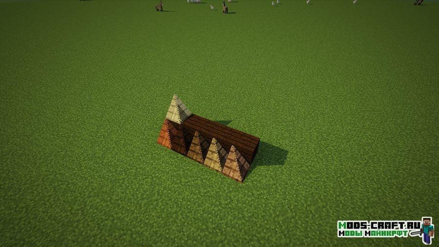 Мод Master Builders добавит новые декоративные предметы, которые дают вам возможность создавать более сложные конструкции в Майнкрафт — склоны, углы и отверстия. Всё это происходит также в комбинации со стандартными предметами и материалами.