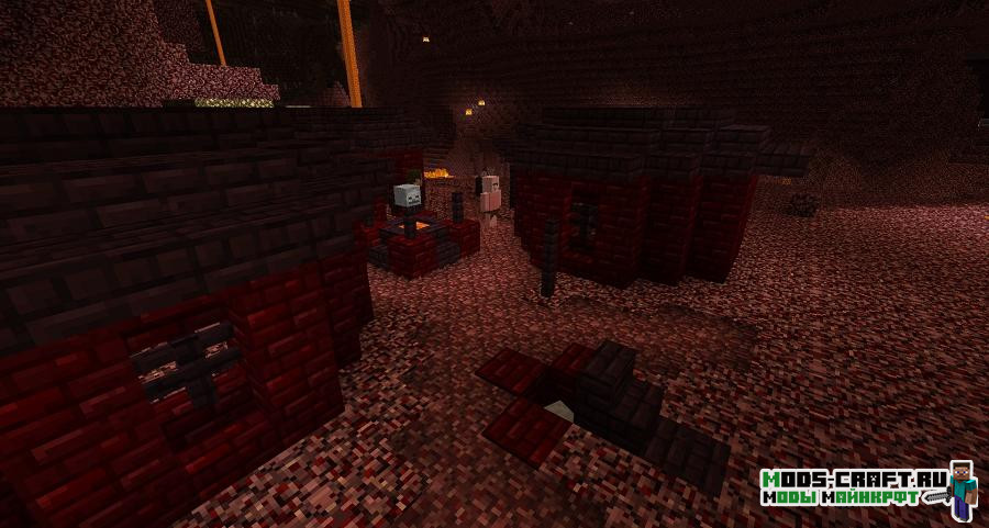Крутой мод, который перерабатывает измерение ада, добавляя в него различные элементы для исследования и 4 новых биома со своими уникальными особенностями и генерируемыми структурами для исследования, мобами, рудами, блоками и предметами. Для комфортного выживания в аду вы теперь сможете скрафтить 3 новых сета брони, набор оружия, а также 3 новых зелья. Можно найти драгоценный камень для торговли с жителями (называются они «Пигтификаты») новых деревень, охраняемых големами в нижнем мире.