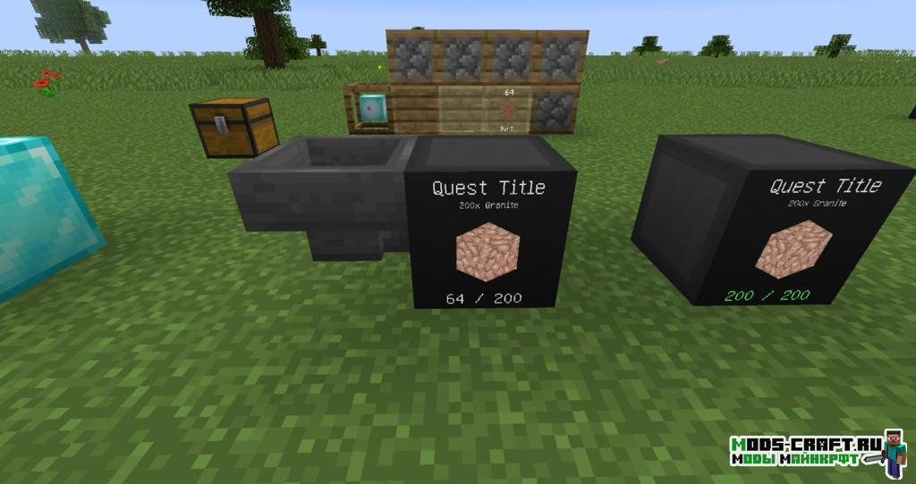 Мод добавит простую систему создания заданий (квестов) с помощью игрового редактора. Это очень пригодится тем людям, создающим свои сборки или создания квестов для своих друзей и совместного их выполнения.