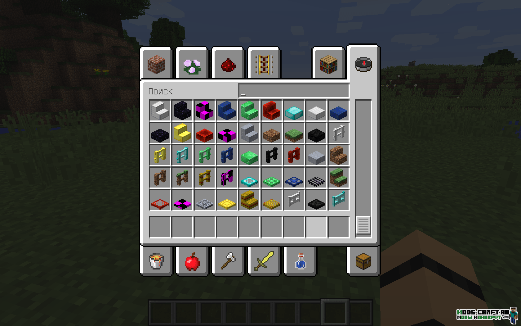 Мод Nifty добавляет различные полублоки, ступеньки, нажимные плиты, заборы, калитки, лестницы, двери и люки из разных материалов в Майнкрафт! Теперь можно строить красивые дома в различных стилях, либо в одном стиле, используя, например, алмазы или железо.